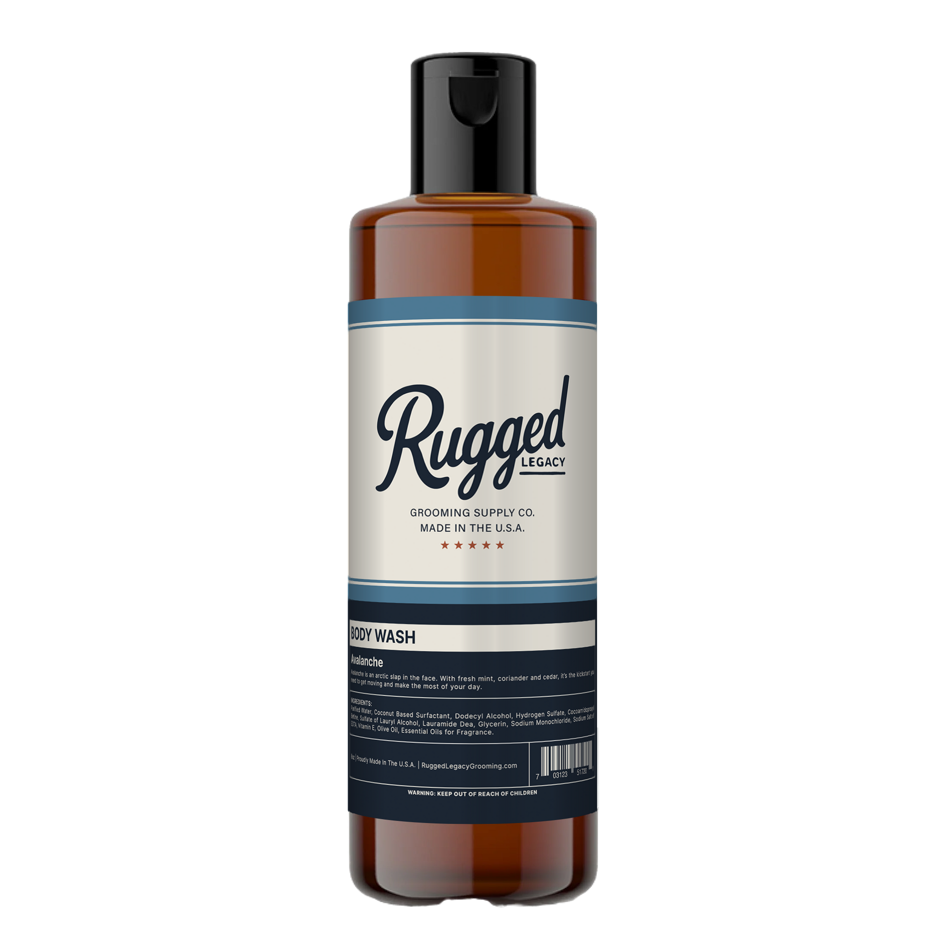 Our body wash is made with gentle cleaning agents and natural Vitamin E and Olive Oil. It's designed to give you the ultimate clean feeling without damaging or drying out your skin. The scent is powerful enough to wake you up in the shower, but subtle when dry - so it won't compete with the scents of our other premium grooming products that are part of your daily routine. Even if you're not a morning person, this body wash will get you going.